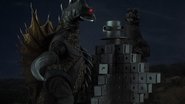 An alien invasion prompts a tag-team battle between Godzilla and Anguirus, the planet protectors, and King Ghidorah and the new monster Gigan, a cyborg with scythe-like claws, an abdominal buzz saw, winglike back fins, and pincerlike mandibles. In this action-packed film, which veers from the sublime to the ridiculous, the cockroachlike aliens—disguised as humans—use Gigan and King Ghidorah as weapons of conquest in their plot to take over a contaminated Earth.